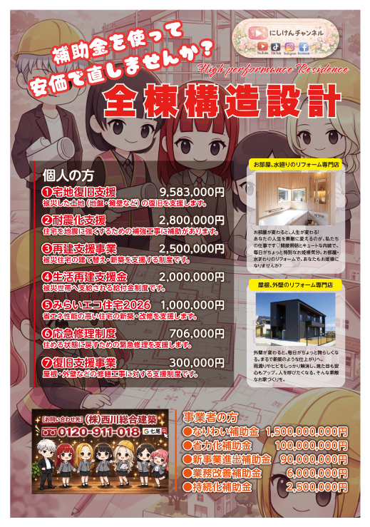 補助金で少しでも安価に直しませんか?